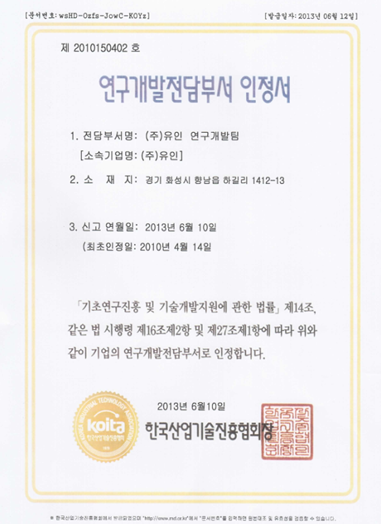 연구개발전담부서 인정서