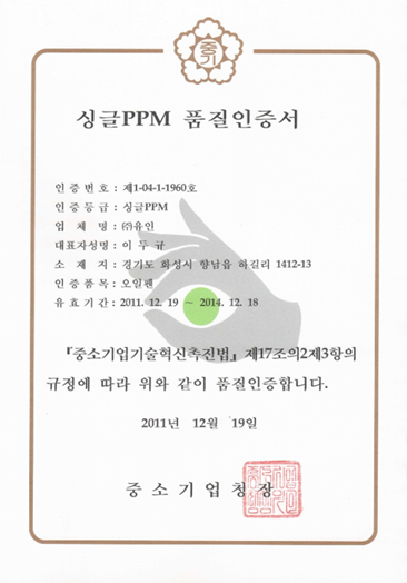 싱글PPM 품질인증서